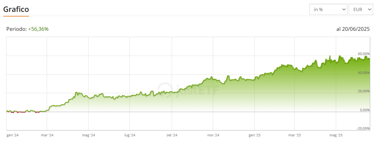 Andamento dell’oro dall’1/1/2024 ad oggi (fonte: justETF)